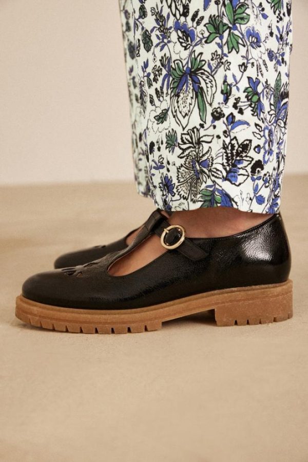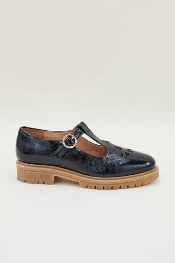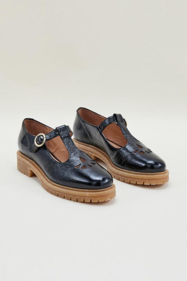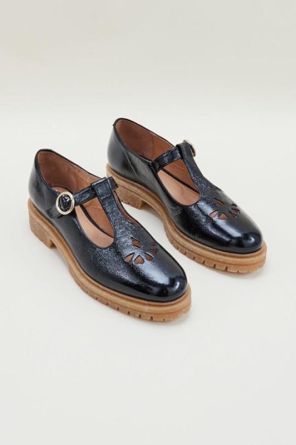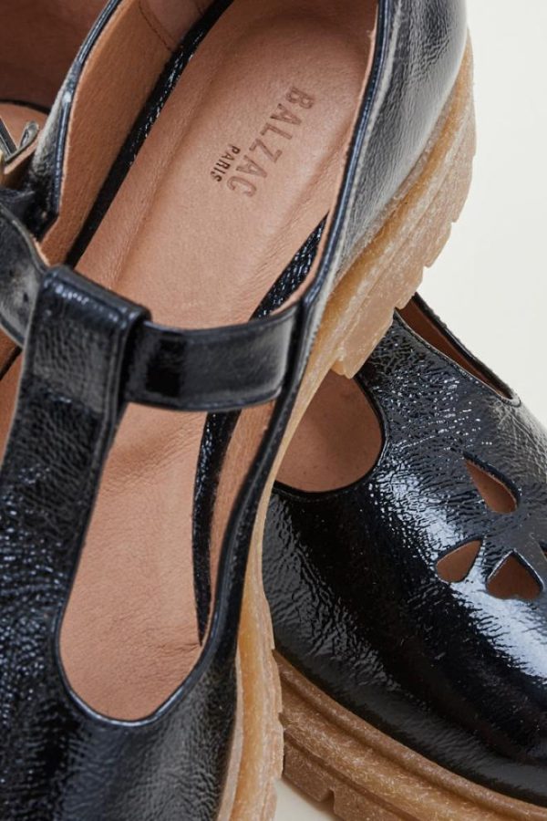 Les babies Romy vernis froissé noir sont idéales pour la mi-saison. Elles se portent aussi bien avec des collants que sans.