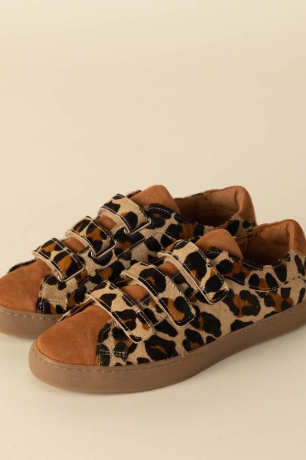 Les baskets Honoré léopard gardent leur forme qui vous va si bien et leur fermeture par trois scratchs idéale pour tous les jours.