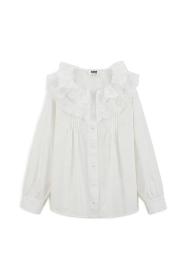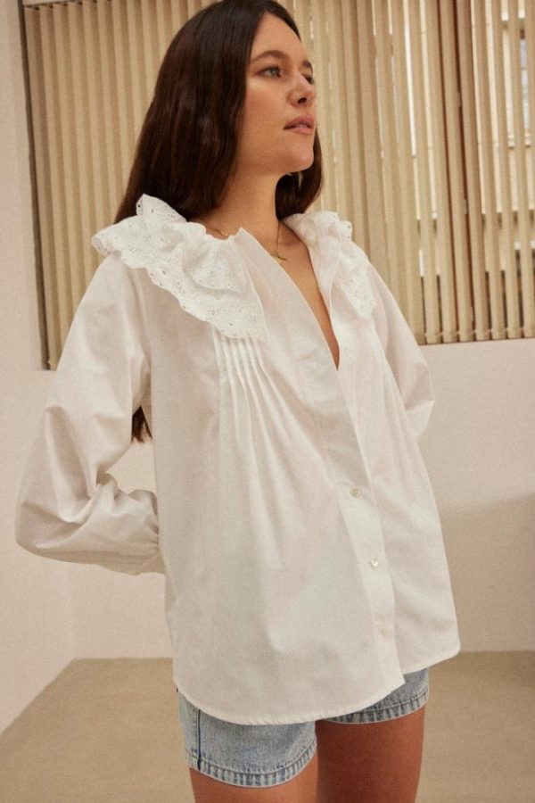 La chemise Fossette blanc naturel et son double volant se porte été comme hiver.