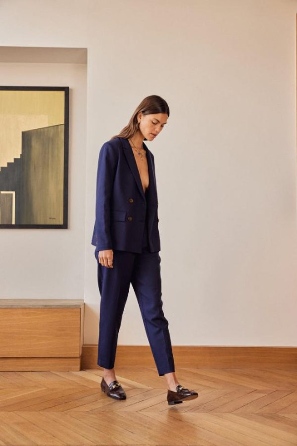 Le pantalon Abramo marine est parfait pour être élégante lors de belles occasions. Vous pouvez l’associer à la veste tailleur Nael marine pour un total look.