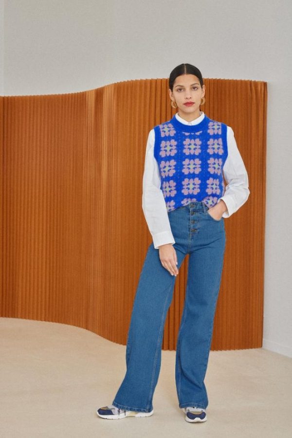 Balzac Paris Pull Anémone Bleu Et Rose | Femme Pulls Et Cardigans