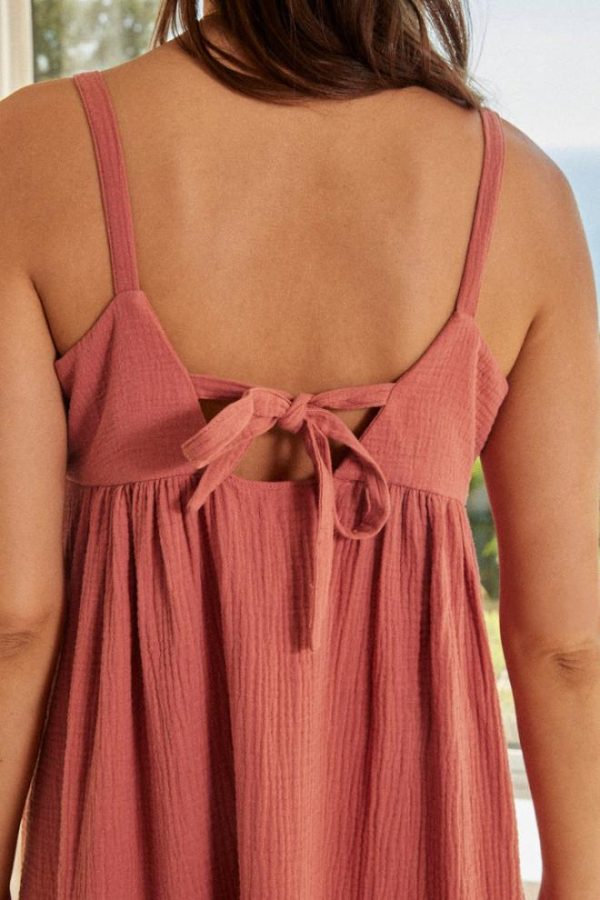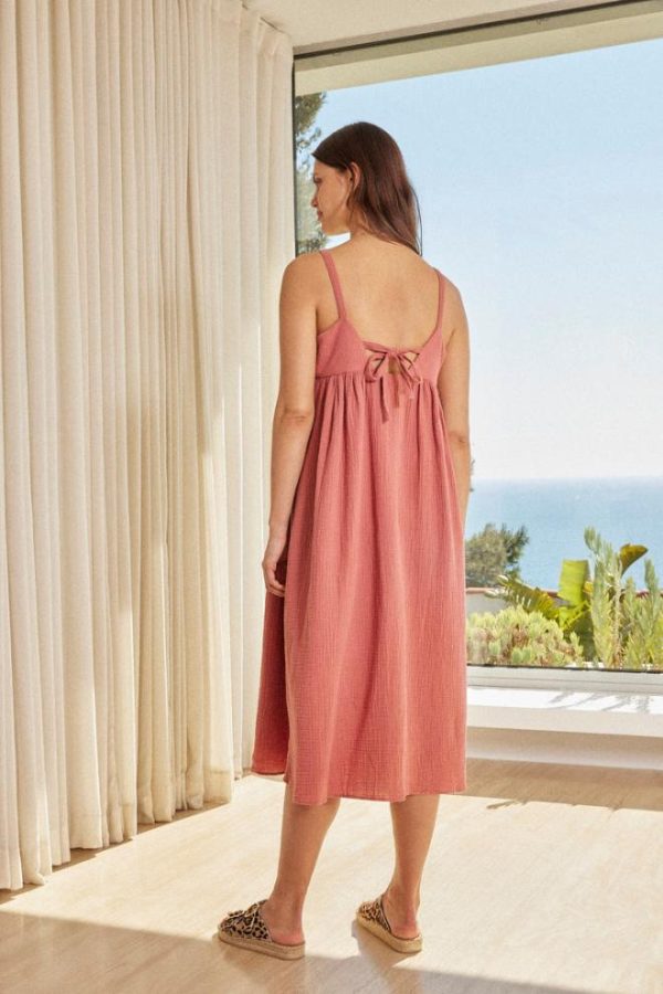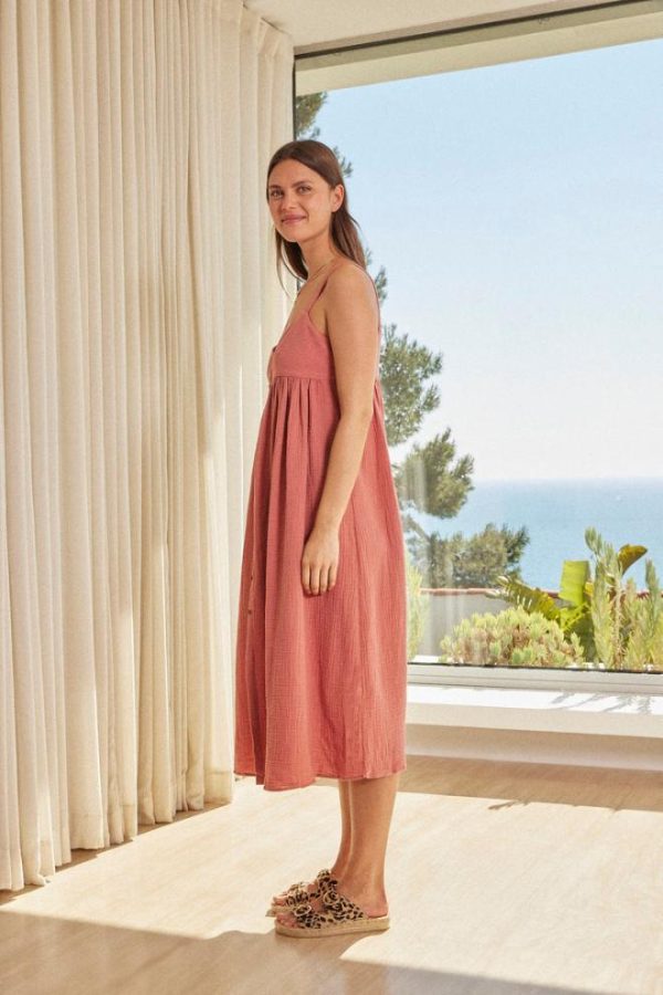 La robe Samba brique a tout pour plaire : un lien à nouer dans le dos pour orner votre dos nu et une jolie patte de boutonnage.