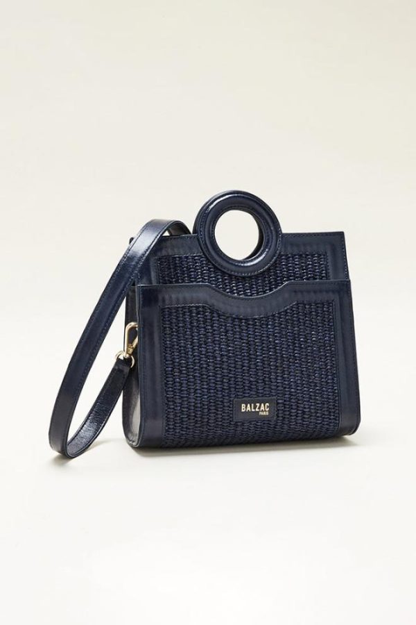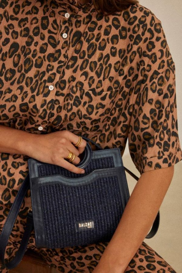 Le sac mini Gaïa raphia et cuir marine est très féminin avec ses courbes et ses anses rondes. Vous pourrez y mettre toutes vos affaires.