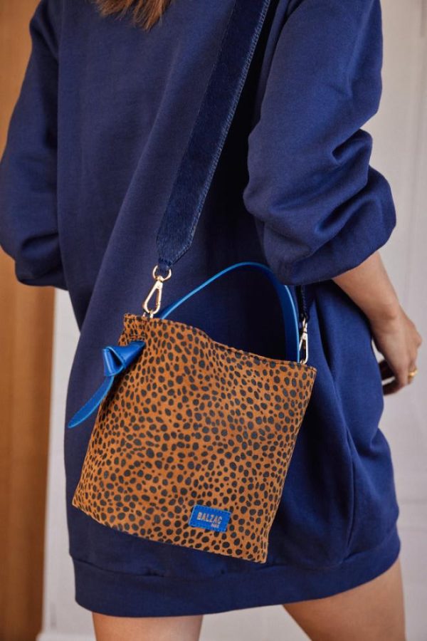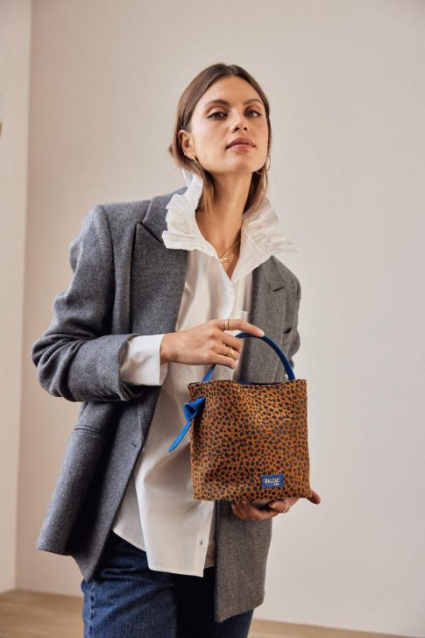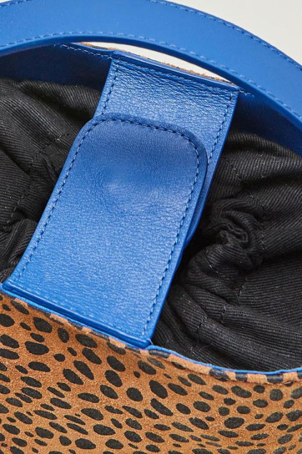 Porté à la main, à l’épaule ou en bandoulière le sac Orion bi-matière guépard et bleu est l’équilibre parfait entre souplesse et tenue.