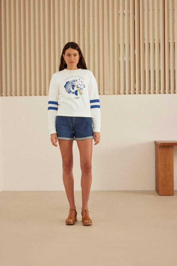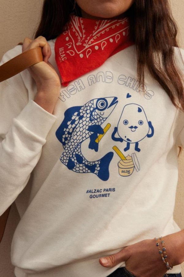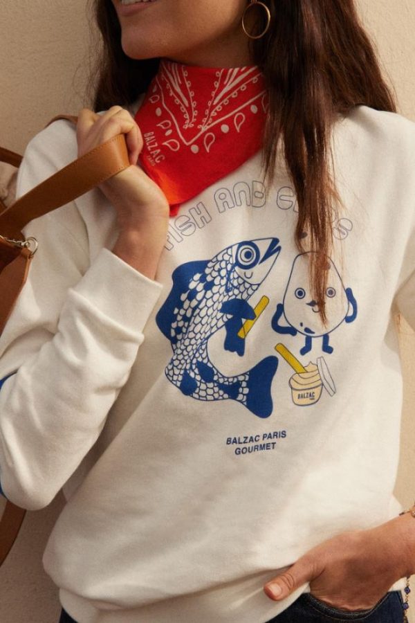 Balzac Paris Sweat-shirt Harlow Fish & Chips écru Et Bleu | Femme Sweats
