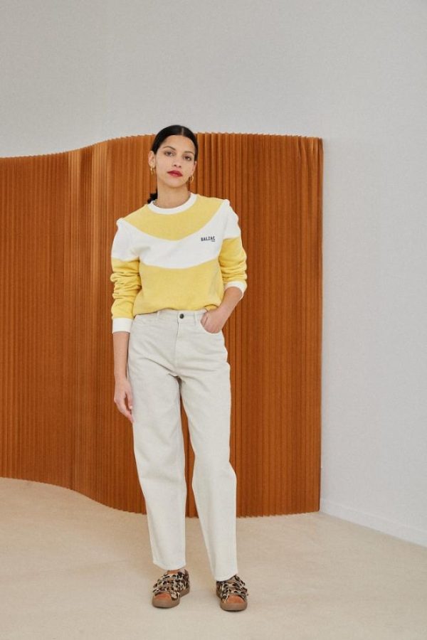 Le sweat-shirt Ignace bicolore jaune et écru c’est l’équilibre parfait entre folie et douceur. Nous devons son côté foufou à ses couleurs, et sa douceur extrême à sa matière en coton.