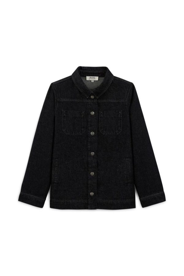 Manoa, notre veste en jean basique, classique, indémodable se décline dans un coloris noir chiné. Sa matière en coton biologique certifié GOTS, fait d’elle une veste entièrement responsable.